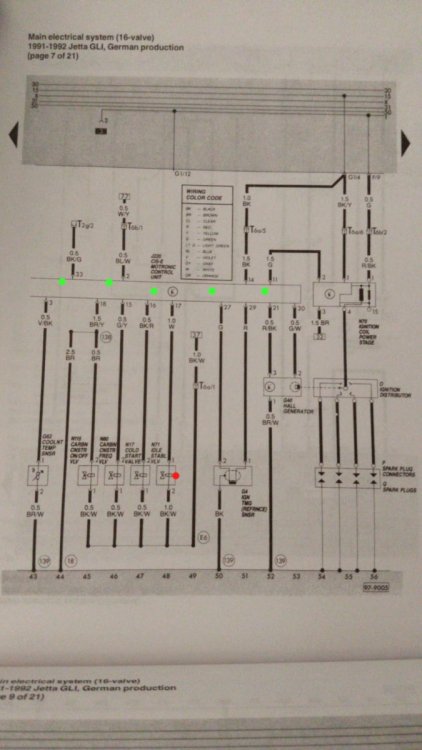 Green wire (goes to ignition timing reference sensor/knock control sensor)